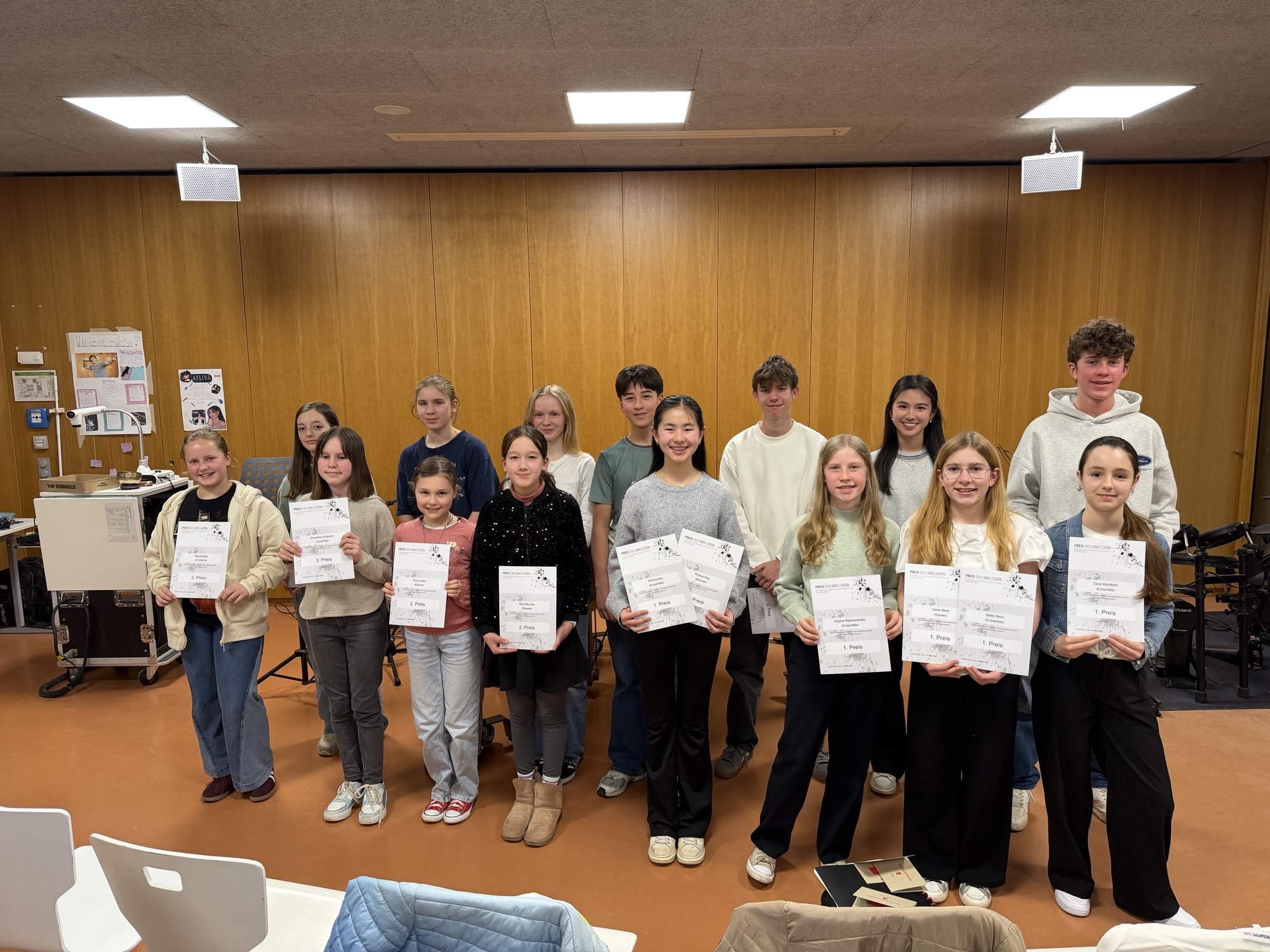 Am Donnerstag, dem 12. März, fand das Preisträgerkonzert des Musikwettbewerbs „Preis des EBG“ statt. Bereits eine Woche zuvor war der Wettbewerb durchgeführt worden, bei dem die teilnehmenden Schüler*innen von einer Jury aus Schüler*innen, Lehrkräften sowie einer Vertretung des Förder- und Freundeskreises bewertet wurden.